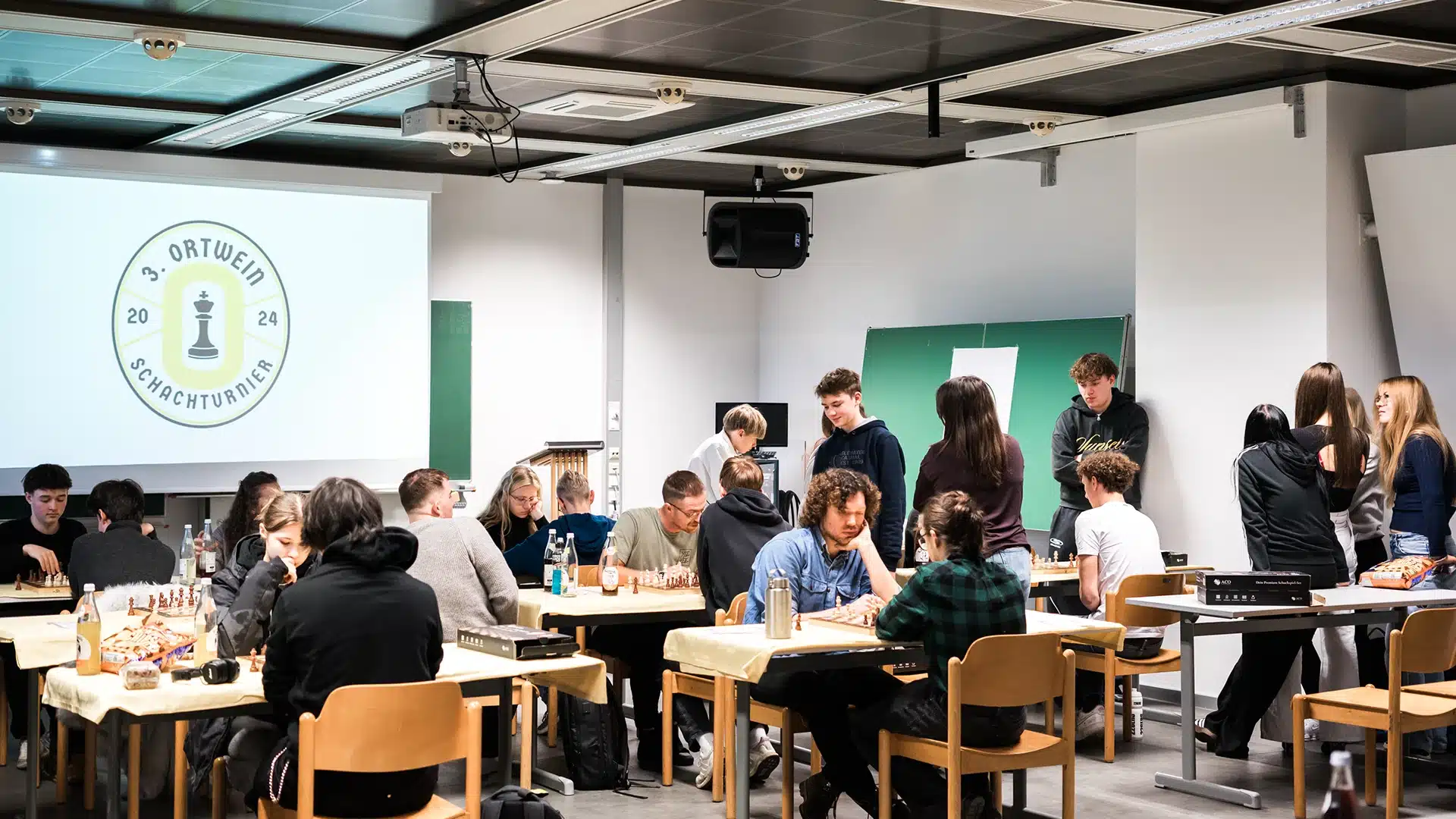 Einmal pro Semester bekommt die Schulgemeinschaft Gelegenheit dazu, sich hitzige Duelle am karierten Holzbrett zu liefern. Erfreulicherweise war das Interesse auch diesmal wieder ausgesprochen groß: 25 Anmeldungen aus den unterschiedlichen Abteilungen machten die Veranstaltung zu einem Abbild der Vielfalt der Ortweinschule.