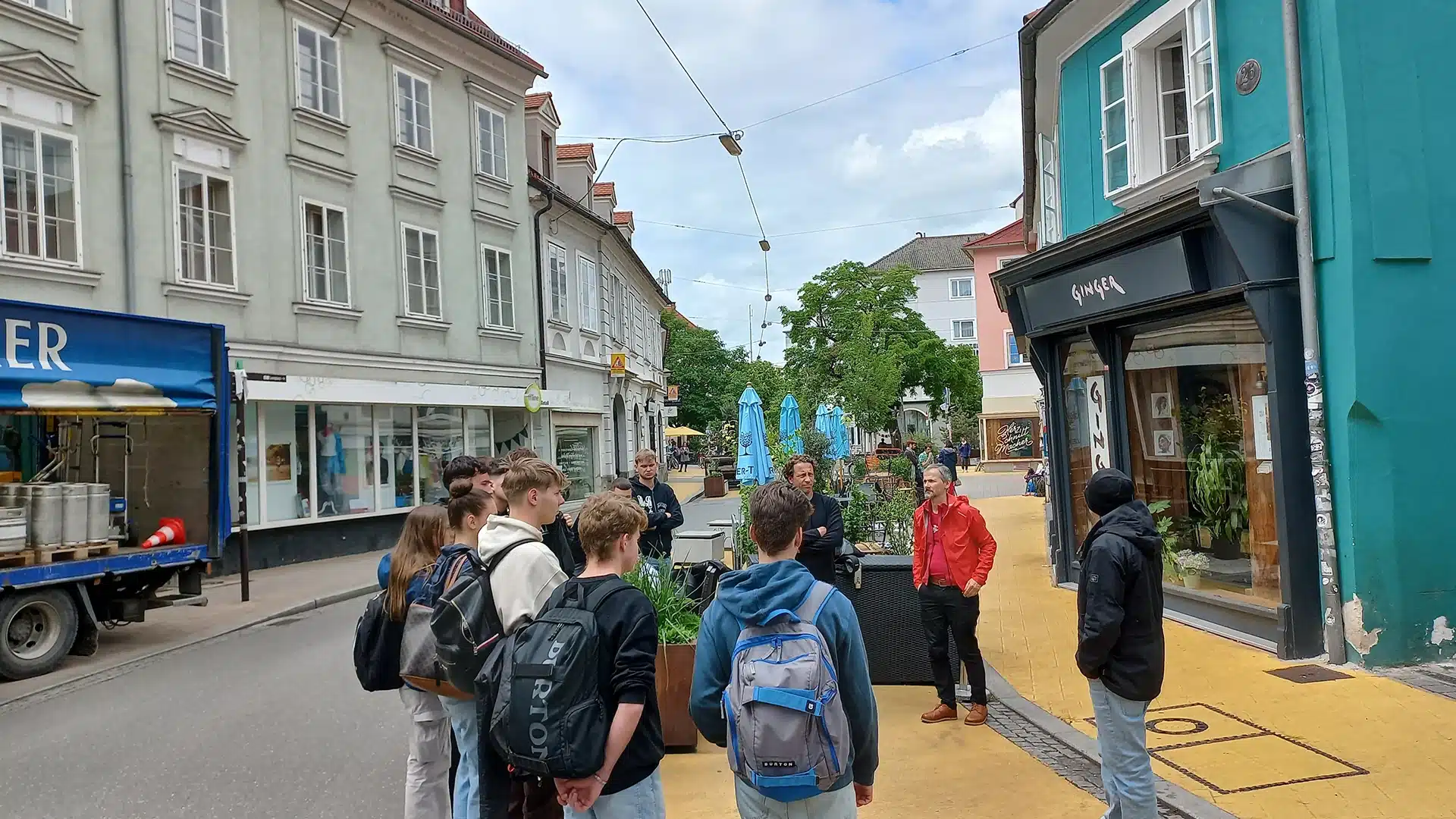 Am 14. 05. 2024 erhielt die 4AHBTH von ihrem Wirtschaftspartner verkehrplus die Möglichkeit, die Begegnungszone Lendplatz und die Begegnungszone Zinzendorfgasse zu besichtigen. Die Exkursion stand unter der Leitung des Geschäftsführers Dr. Markus Frewein und des Gesellschafters DI Jakob Seidler.