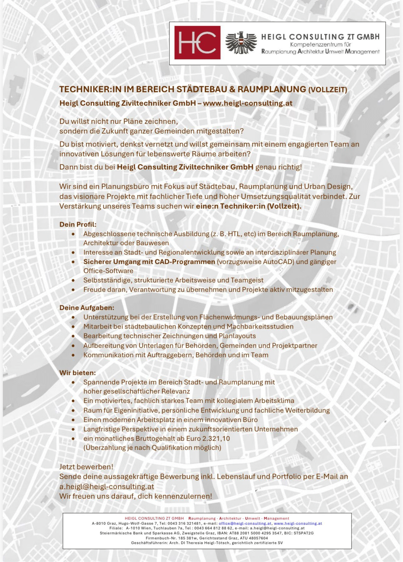 HEIGL Consulting ZT GmbH – Techniker:in im Bereich Städtebau & Raumplanung (Vollzeit)